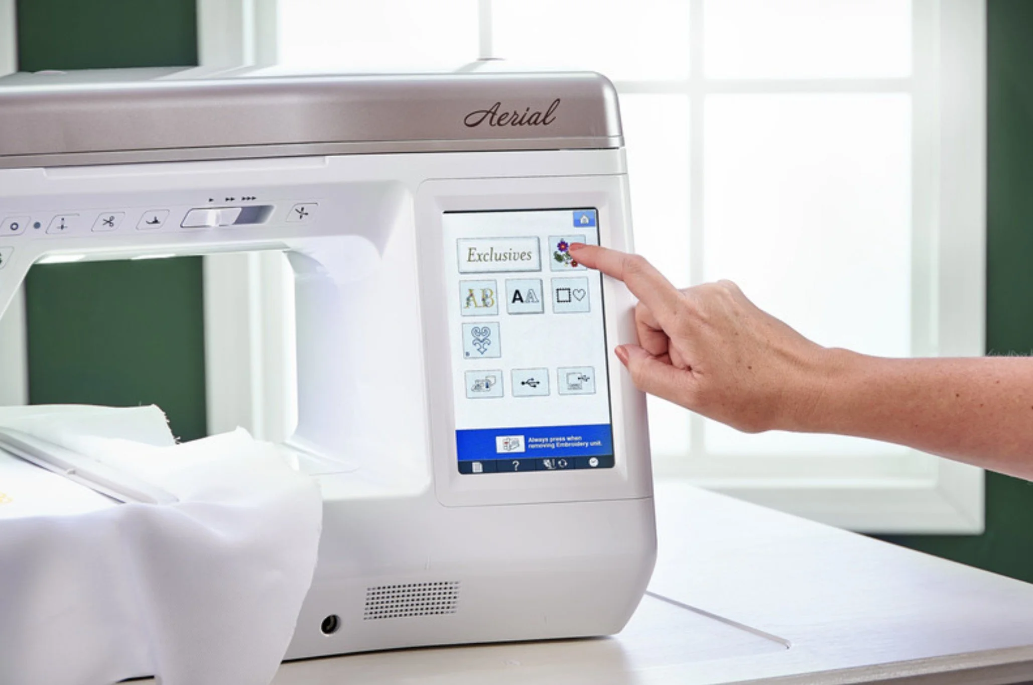 With a generous 11.25" workspace the right of the needle, Aerial gives you plenty of room to work. Those larger projects aren’t anything to worry about!