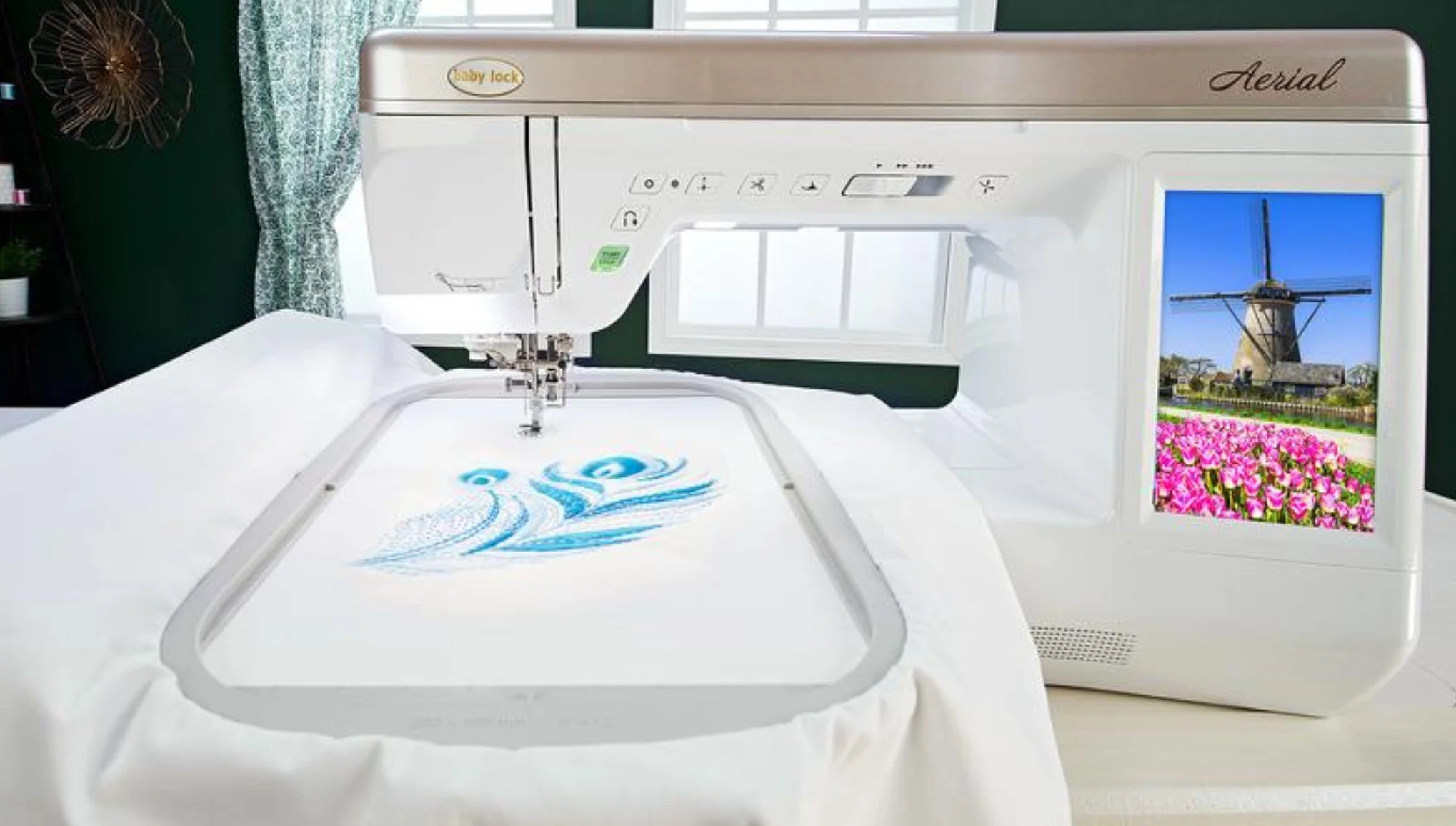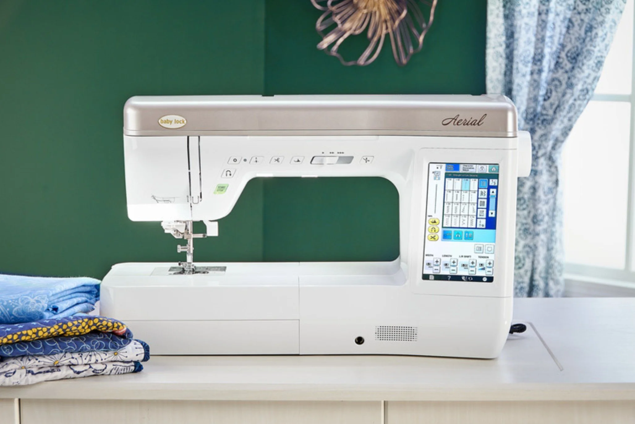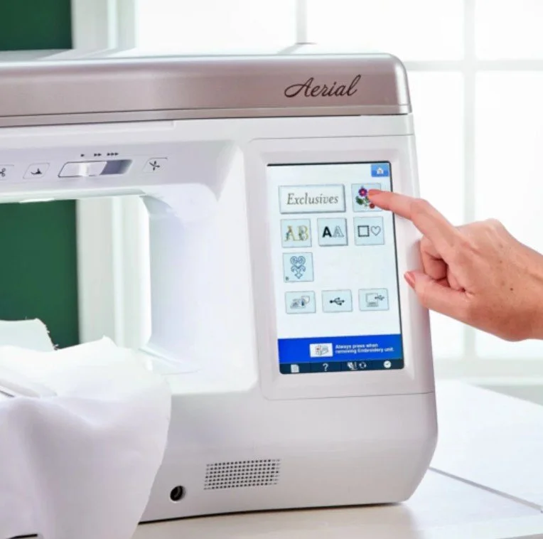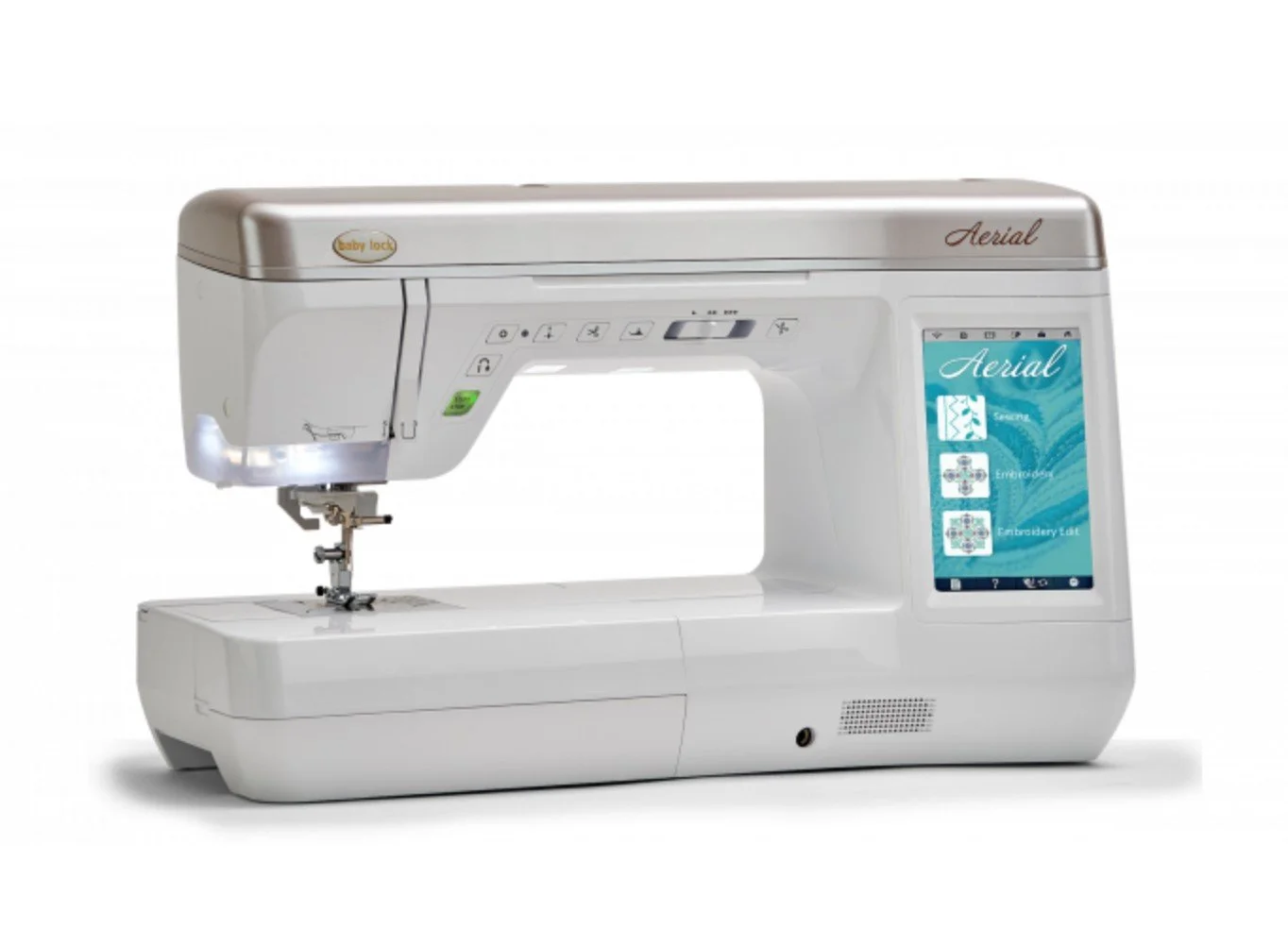 The Baby Lock Aerial sewing and embroidery machine takes your projects to new heights with a variety of advanced features you’ve come to expect from Baby Lock. It features IQ Technology™ that works with the machine's “brain” to make sewing and embroidery easier.