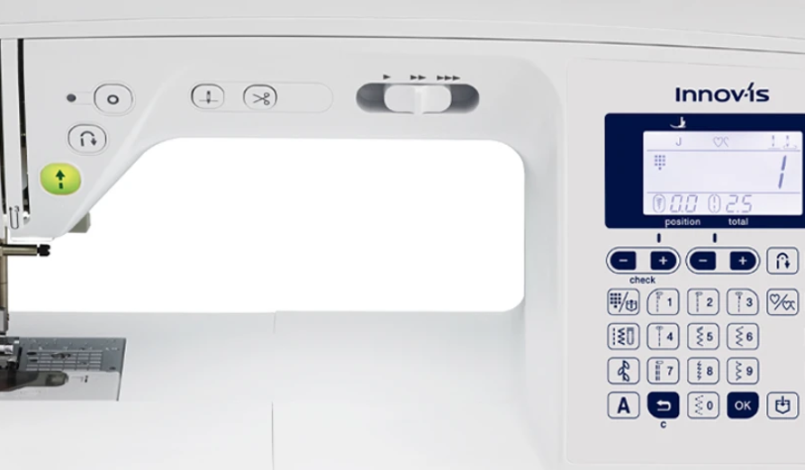 100 built-in sewing stitches, including 7 styles of one-step buttonholes, and 4 sewing lettering fonts.