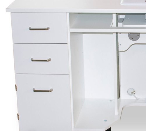 This cabinet was specially designed for the BERNINA L 890 and L 850 Overlockers. It features easy-roll lockable casters for better portability and stability.