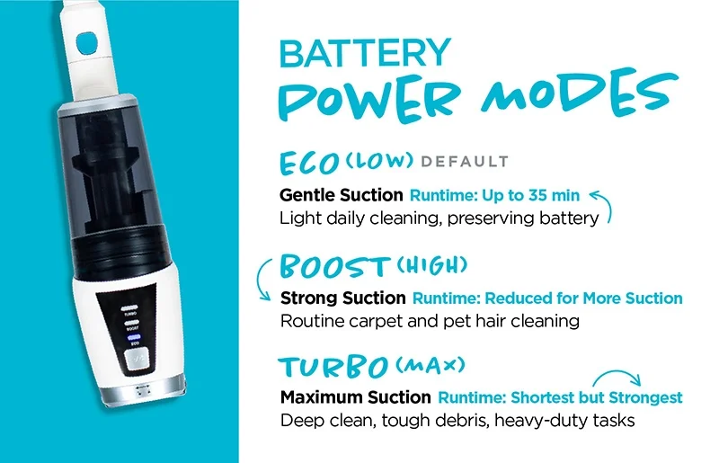 Don’t feel like disassembling the vacuum? With hassle free storage, just place it on the charging wall mount that includes button lock tool storage to keep everything in place! This portable vacuum additionally gives you flexible charging options – plug into the handheld unit, utilize the wall mount, or charge directly on the battery.